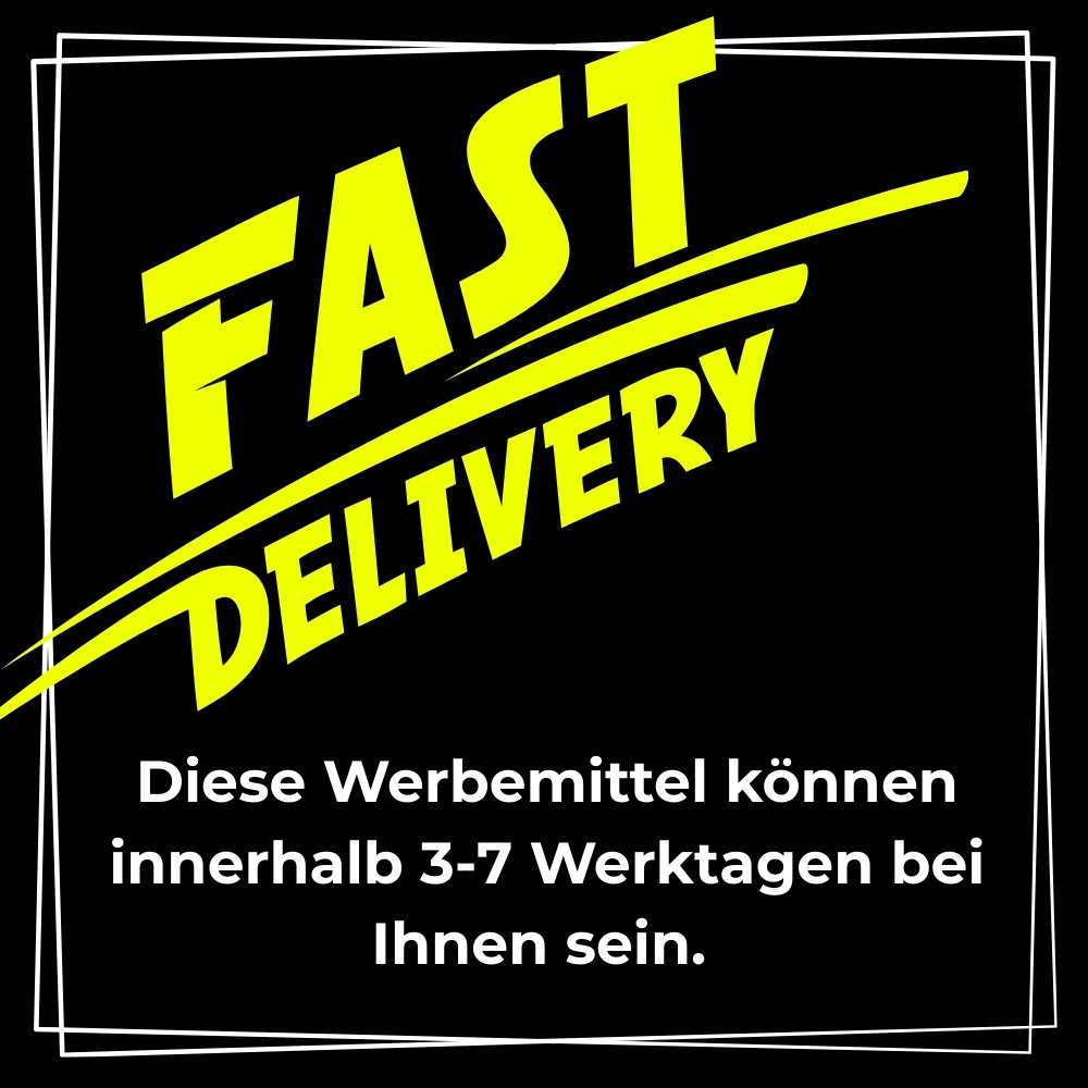 Wenn der Auftrag und das Druckdesign (Korrekturabzug) an einem Werktag vor 11:00 Uhr genehmigt wird, werden die Artikel innerhalb von 24 Stunden produziert und am nächsten Tag noch versendet.